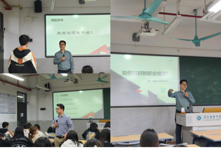 广州云岸文化传播有限公司总经理吴继君给24英语4班分析了英语专业就业前景和如何做好职业规划。给英语专业师生提供一线的行业知识和实践经验。吴继君老师深耕国际贸易和教育行业多年,具有深厚的专业知识和丰富的实践经验。他凭借着丰富的实践经验和独特的视角,为学生们带来两堂别开生面的职业规划课程。
