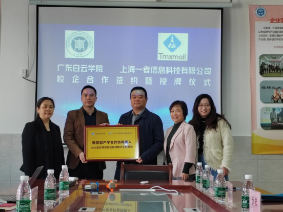 12月13日,广东白云学院外国语学院与上海一者信息科技有限公司签署合作协议,共同建立教育部产学合作协同育人项目下的AI大语言模型智能翻译教学实践基地,并举行了授牌仪式。上海一者信息科技有限公司商务总监刘鹏先生,外国语学院张广奎院长、沈纯琼副院长、英语专业负责人刘琴主任、校企合作王建勤主任及学院教师代表郭晓琳等出席了此次仪式。