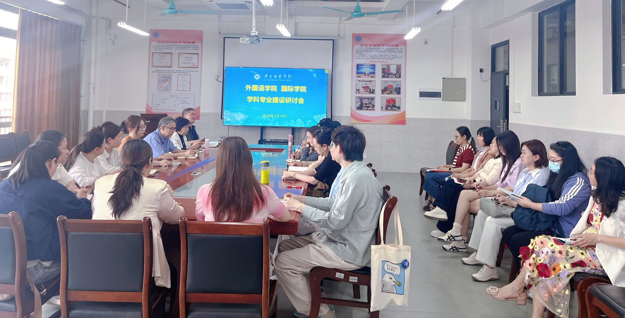 3月19日下午,外国语学院、国际学院在北校区励学楼705会议室召开学科专业建设研讨会。会议由廖开洪院长主持,两院领导班子成员、各专业负责人、系部正副主任及教师代表围绕学科布局优化、人才培养创新、就业质量提升等核心议题展开深入研讨,共谋学院高质量发展新路径。